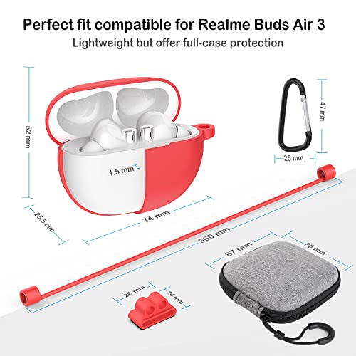 Custodia Compatibile per Realme Buds Air 3, GeeRic 5PCS Accessori Kit Case Protective Silicone Impermeabile Auricolari Cover Compatibile per Realme Buds Air 3 con Mini Borsa Portabile Leggero Rosso