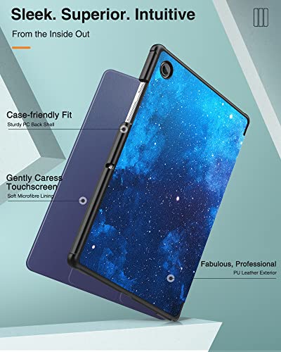 MoKo Custodia Compatibile con Tablet Galaxy Tab A8 10,5 Pollici 2021 (SM-X200/SM-X205/SM-X207), Cover Tripieghevole e Ultra Sottile Leggera, Auto Accensione/Spegnimento, Cielo Stellato Blu