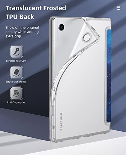 MoKo Custodia Compatibile con Tablet Samsung Galaxy Tab A8 10,5 Pollici 2021 (SM-X200/SM-X205/SM-X207), Cover Tripieghevole e Retro Traslucido in TPU, Auto Accensione/Spegnimento, Cielo Stellato Blu