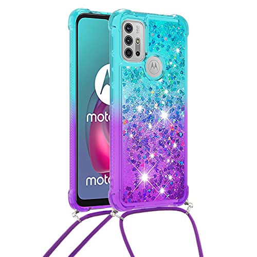 Custodia con Cordino per Motorola Moto G30 / G20 / G10, Glitter Liquido Quicksand Custodia(Pendenza), Sparkly TPU Silicone Protettivo Case Anti Graffio Antiurto Cellulare Cover con Collana