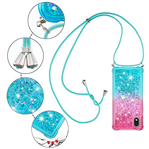Custodia con Cordino per Samsung Galaxy J6 2018, Glitter Liquido Quicksand Custodia(Pendenza), Sparkly TPU Silicone Protettivo Case Anti Graffio Antiurto Cellulare Cover con Collana