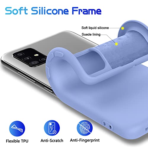 Custodia Cover Compatibile con Samsung Galaxy A51 4G con 3 Pezzi di Vetro Temperato Incluso, Morbido Silicone Protettivo Bumper TPU Gel Custodia Case, Viola