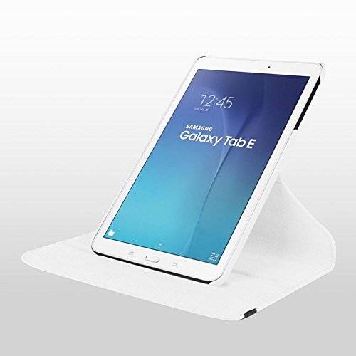 Custodia cover 360 Gradi flip rotabile litchi texture eco pelle BIANCO con stand per Samsung Galaxy Tab E 9.6 T560 T561 + pellicola protettiva + pennino capacitivo + pannetto pulisci schermo digital bay