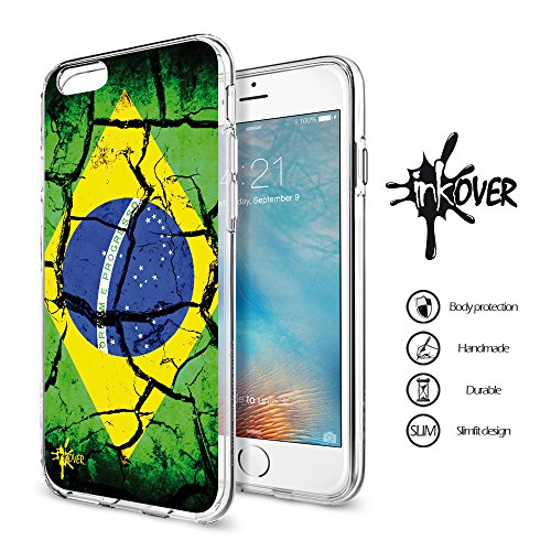Custodia Cover Guscio Protezione Trasparente Slim Fit Tpu Flessibile INKOVER Design BANDIERA BRASILE Verdeoro Nazionale Flag BRAZIL per APPLE iPhone 5 & 5S & SE