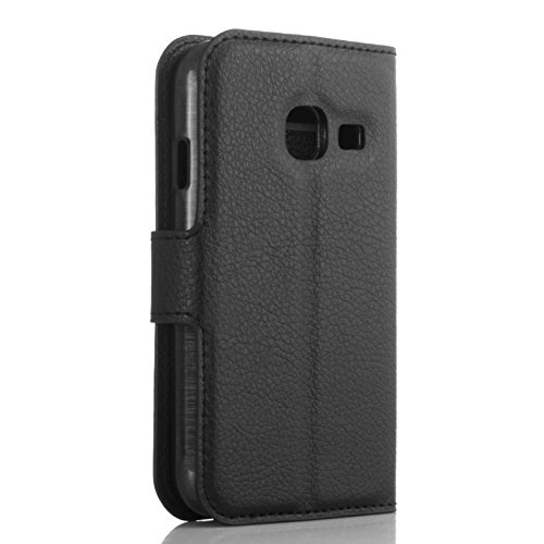 Custodia cover horizontal flip leather case NERO con supporto e card slot per Samsung Galaxy J1 Mini J105 + pellicola protettiva + pannetto pulisci schermo
