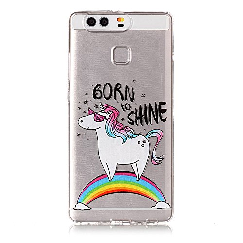 3x Custodia Cover Huawei P9, BENKER Creativa Painted 3D Ultra Sottile TPU Silicone Anti-graffio e Anti-urto Telefono Caso - Unicorno,Fishtail,Cat Farfalla