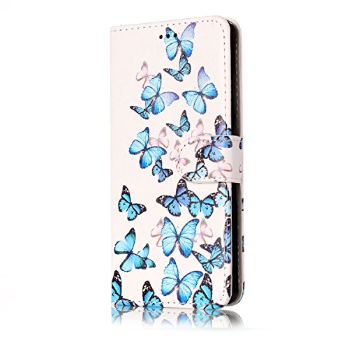 Custodia Cover per Huawei P8 Lite Bianco,Flip Cover Huawei P8 Lite a Libro,[Non per Huawei P8 Lite 2017] BtDuck Ultra Sottile Elegante PU Pelle Borsa e Portafoglio Tasca Libro Stand Bumper Case Morbido Silicon Back Case Full Body Flip Cover per Huawei P8 Lite Telefono di mano e Card Slot Wallet Case per Donna Ragazze Regalo di Compleanno Figlia Regali di Natale Bookstyle Portafoglio Magnetica Disegno Protezione Silicio Case + 1x Nero Stylus Penna - Farfalla Blu