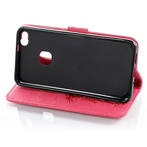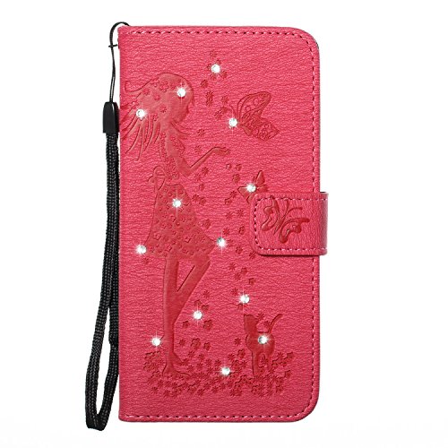 Custodia Cover per Huawei P10 lite,Etsue Copertura in Pelle/Leather cover case,Protective case cover case,Point drill woman and cat embossed pattern leather,Skin Protective Skin Shell Cover[Anti-scratch][Shock-aborption]per Huawei P10 lite-Rosa rossa