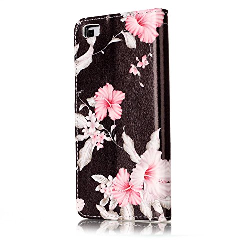 Custodia Cover per Huawei P8 Lite Nero,Flip Cover Huawei P8 Lite a Libro,[Non per Huawei P8 Lite 2017] BtDuck Ultra Sottile Elegante PU Pelle Borsa e Portafoglio Tasca Libro Stand Bumper Case Morbido Silicon Back Case Full Body Flip Cover per Huawei P8 Lite Telefono di mano e Card Slot Wallet Case per Donna Ragazze Regalo di Compleanno Figlia Regali di Natale Bookstyle Portafoglio Magnetica Disegno Protezione Silicio Case + 1x Nero Stylus Penna - Rosa Fiore