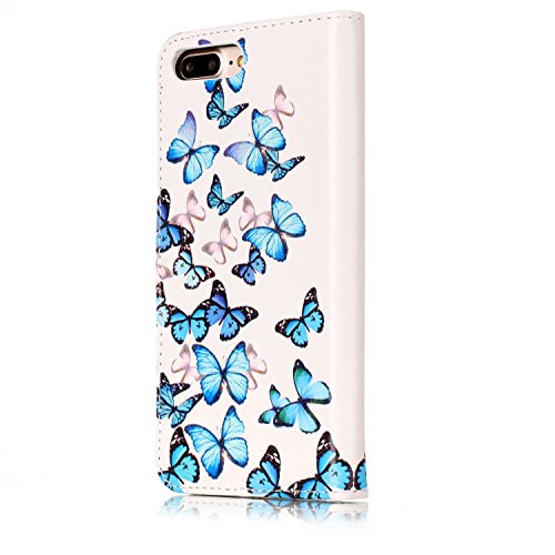 Custodia Cover per iPhone 7 Plus 5.5 Bianco,Flip Cover iPhone 7 Plus 5.5 a Libro,BtDuck Ultra Sottile Elegante PU Pelle Borsa e Portafoglio Tasca Libro Stand Bumper Case Morbido Silicon Back Case Full Body Flip Cover per iPhone 7 Plus 5.5 Telefono di mano e Card Slot Wallet Case per Donna Ragazze Regalo di Compleanno Figlia Regali di Natale Bookstyle Portafoglio Magnetica Disegno Protezione Silicio Case + 1x Nero Stylus Penna - Farfalla Blu