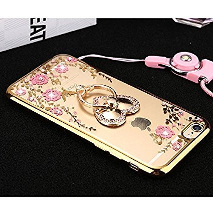 Custodia Cover Case per iPhone 6/6S,Custodia ETSUE Trasparente Chiaro Cristallo Ultra sottile Premium TPU Custodia in silicone con supporto telefono 360°,iPhone 6/6S Lusso Pink Case placcatura strass Diamond Glitter Bling Bling Cool Romantico Rosa Diamond Sparkle Clear Crystal con Beautiful Cherry Blossom Custodia protettiva Pink Pattern Bumper Shell Case con strap per iPhone 6/6S -ORO