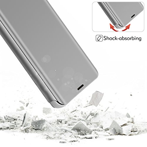 Custodia Cover per iphone X, Lusso PU Portafoglio Wallet Case,iphone 10 Electroplate in pelle Specchio Mirror Effect Leather Flip Folio Libro Cover (Argento, For iphone X 5.8'')