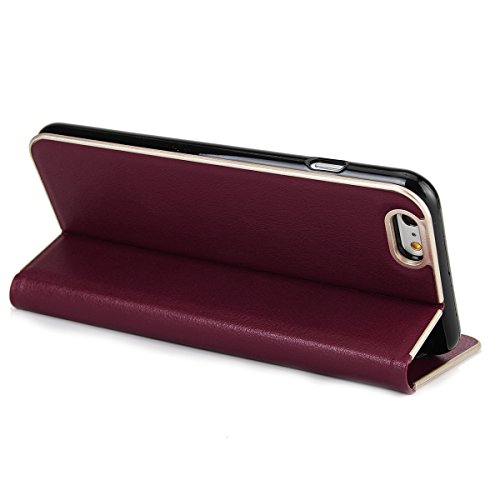 Custodia Cover per iPhone 6S 4.7, Ukayfe Luxury Puro Colore 3D Design Litchi Tessitura PU pelle Bumper Slim Folio Protectiva Lussuosa Custodia Cover per iPhone 6 4.7,[PU Leather] [Shock-Absorption] Portafoglio Cover Custodia con Super Sottile Morbido TPU Interno Case e Porta carte di credito Portafoglio Custodia Protettiva Cover Copertura Tutta Potente per iPhone 6/6S 4.7-Borgogna #