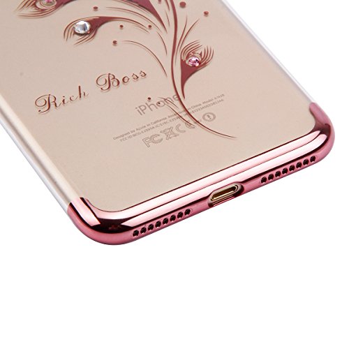 Custodia Cover iPhone 7 plus,Ukayfe Ultra Slim Custodia Cover per iPhone 7 plus in Gel TPU Silicone Case Morbida Soft Trasparente e Cristallo Protettiva Custodia Brillantini Resistente ai Graffi Anti Scivolo Case Posteriore Della Copertura Della Protezione Anti-urto con Bella Pittura Disegni Intarsiato Marvel Belle Lusso Bling Glitter Diamanti Strass Luccichio Lustrino Donna Girl Ragazza Case Caso Coperture Bumper per iPhone 7 plus-Piume di pavone 2#
