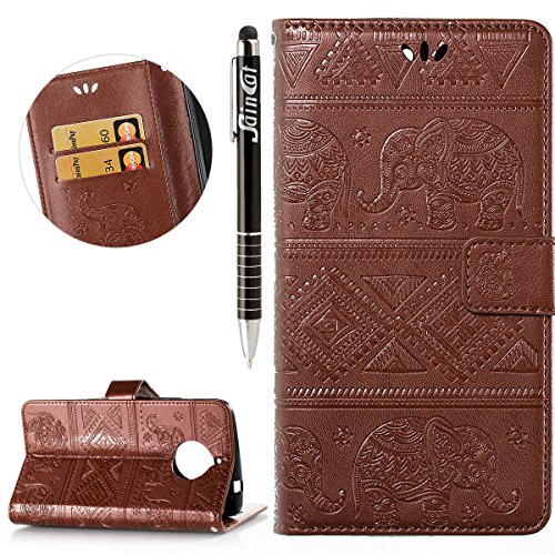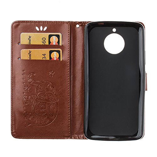 Custodia Moto E4 Plus, Moto E4 Plus Cover Flip, SainCat Custodia in Pelle Cover per Motorola Moto E4 Plus, Ultra Sottile Anti-Scratch Ultra Resistente Book Style Custodia Morbida Cover Protettiva Cover Ultra Soft PU Leather Custodia Libretto Antiscivolo Custodia a Portafoglio Shock-Absorption Wallet Cover Supporto Skin Cover Shell Magnetico Flip Case, ID Slot per Scheda Protettiva Custodia Coperture Bumper Cover per Motorola Moto E4 Plus-Marrone