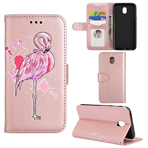 Custodia Cover Case per Samsung Galaxy J3 2017,Etsue Bling Bella Flamingo Leather Case per Samsung Galaxy J3 2017,Glossy Bling Case Leather Flip Case Copertura in Pelle/PU Leather Wallet Cover Caso PU Case Fenicotteri Leather Case Book Folding Case Cover in PU pelle con Magnetic Closure e Credit Card Holder[assorbimento dello shock][anti-graffio]Flip Folio Libro Custodia Cover per Samsung Galaxy J3 2017(European verson)+ 1X penna stilo blu + 1X Bling Dust Plug(colore casuale)-Oro rosa