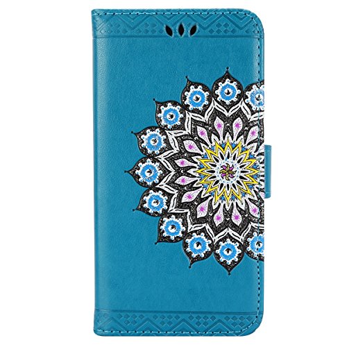 Custodia cover per Samsung Galaxy J7 2017,PU Case Samsung Galaxy J7 2017,Etsue Bling Bling Glitter Shinning Portafoglio/Wallet Leather Cover Fiori di datura Embossed Pattern Protective Flip Wallet Cover Case Bookstyle Folio with Credit Card Slot and Support Magnetic Function[SHOCKPROOF][SCRATCHPOOF] Protecttivo Bumper Shell per Samsung Galaxy J730(European verson)+ 1X penna stilo blu + 1X Bling Dust Plug(colore casuale)-Blu/Fiori di datura