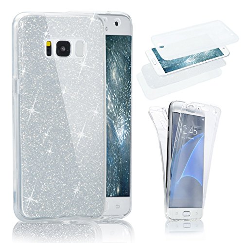 Custodia Cover Samsung S8, Sunroyal Cover Front Retro TPU Trasparente Protezione a 360°, Morbido Glitter Brillantini Bling Diamante TPU Copertura Cover Protettivo Case Ultra Sottile Full body, Moda Serie Completa Screen-Protector 3D Skin Custodia Stilosa custodia di design Protettiva Shell antigraffio Cover posteriore per Samsung Galaxy S8 (5,8 pollici) - Argento