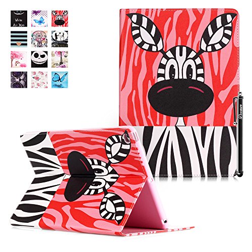 Custodia per iPad Air 2, Deenor Cartoon Pattern Painting Cute and Stylish Fashionable Folding Folio Book Custodia Con Flip Stand Custodia Cover per Apple iPad Air2 iPad 6 generation + Free Gift Touching Pen/Stylus Pen + Screen Film Protector. zebra