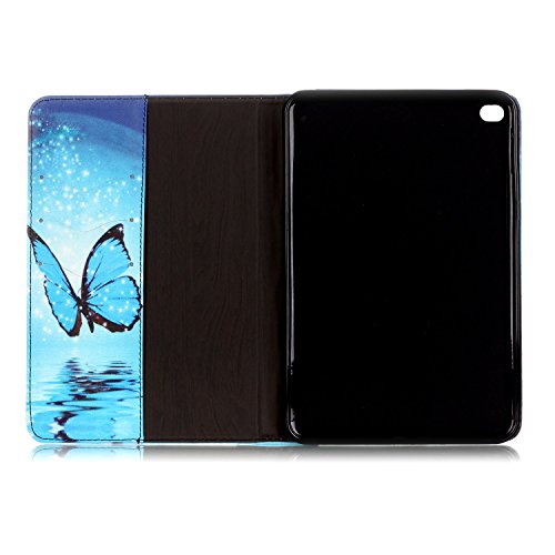 Custodia per iPad Mini 4, Deenor Cartoon Pattern Painting Cute and Stylish Fashionable Folding Folio Book Custodia Con Flip Stand Custodia Cover per Apple iPad Mini 4 + Free Gift Touching Pen/Stylus Pen + Screen Film Protector. blue butterfly