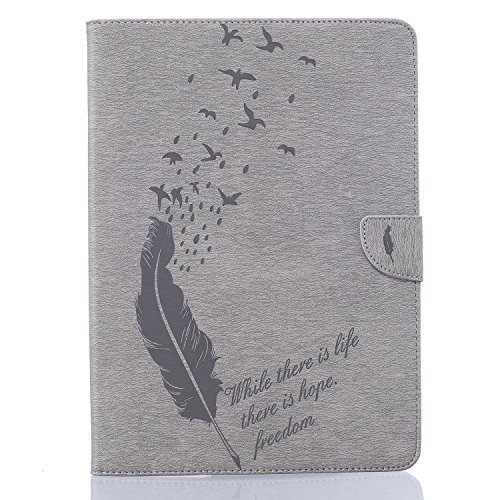 Custodia per iPad Air 2, Deenor Elegante 3D Printing Feather and Birds Serie Portafoglio Case PU Pelle Flip Protettivo Stand Custodia Cover per Apple iPad Air 2 iPad 6 Generation.[Feather-Grey]