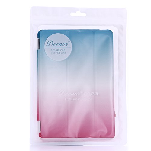 Custodia per iPad Air, Deenor Rainbow Colour Series Smart Cover Transparent Back Cover Ultra Sottile e Leggero Auto Sonno / Sveglia la Funzione protettivo Custodia Cover per Apple iPad Air (2013 Version). (Sky blue and pink)