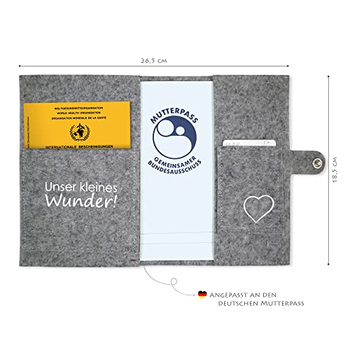 Custodia Deluxe per libretto gravidanza "50% Mama 50% Papa... und ganz viel Wunder" con extra tasche e chiusura in feltro di lana 100% - prodotto in Germania