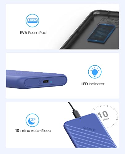 Custodia Disco Rigido Esterno 2.5", ORICO 6Gbps USB 3.1 Gen 2 Case Hard Disk 2.5 per 7mm e 9,5 mm, SATA I II III, HDD, SSD, Supporto UASP, TRIM, Tool Free, Con cavo da C a C (Blu, 25PW1C-C)
