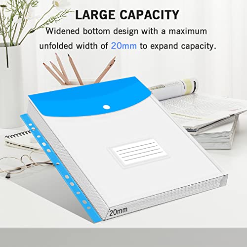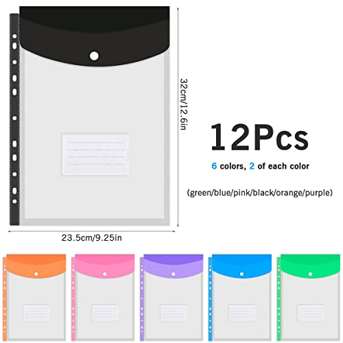 Custodia per Documenti in Plastica A4 12PZ Cartella Perforata Portafogli Buste Archivio A4 Tasche Perforate Espandibili Automatici Raccoglitore Cartellina Trasparente A4 con Bottone, Etichette