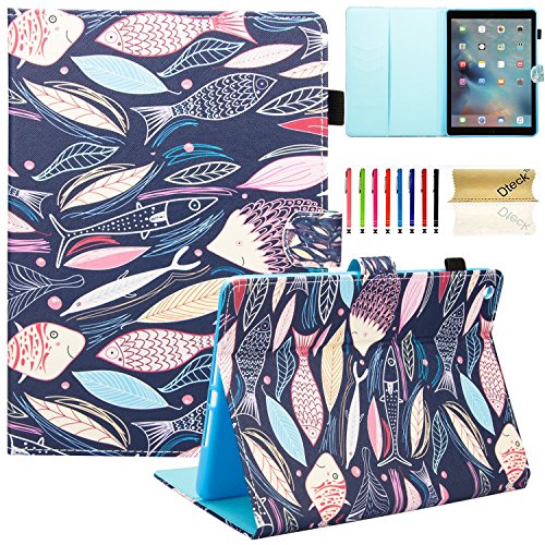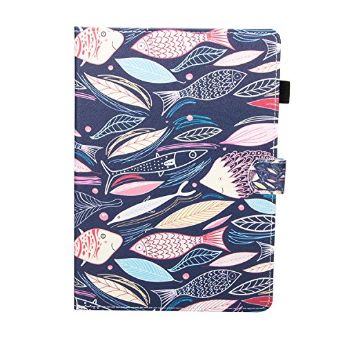 Custodia per iPad 9,7'' mod. 2017, Dteck, ultra sottile, smart, in ecopelle, con scomparti per tessere, funzione automatica di accensione/spegnimento, protezione angoli A_Colorful Fish