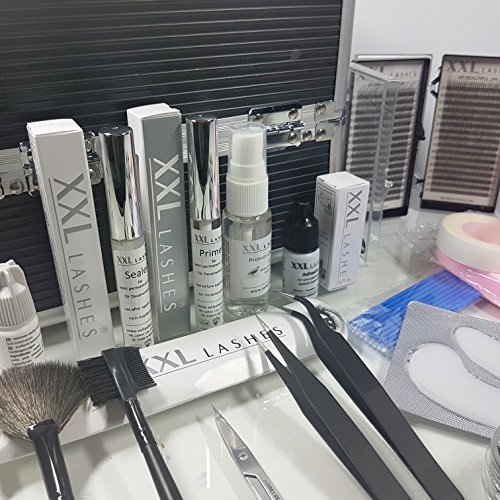 Custodia per extension ciglia XXL Lashes, attrezzatura per stilisti di ciglia, set per professionisti e principianti con prodotti di alta qualità, oltre 40 parti, tra cui valigia e istruzioni, nero