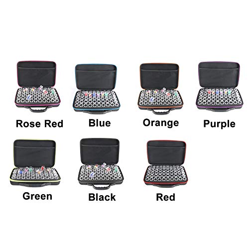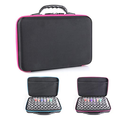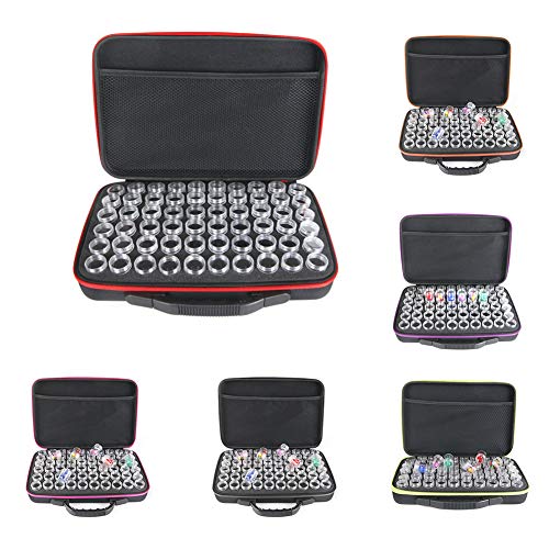Custodia con 60 flaconcini per disegni con strass, in EVA, con 60 scomparti, per fai da te, nail art, lavori artigianali, orecchini, perline, collane, gioielli (rosso rosa)