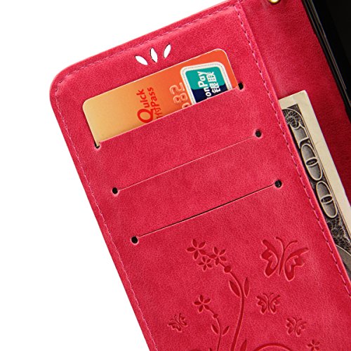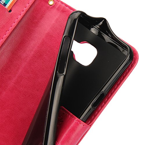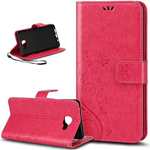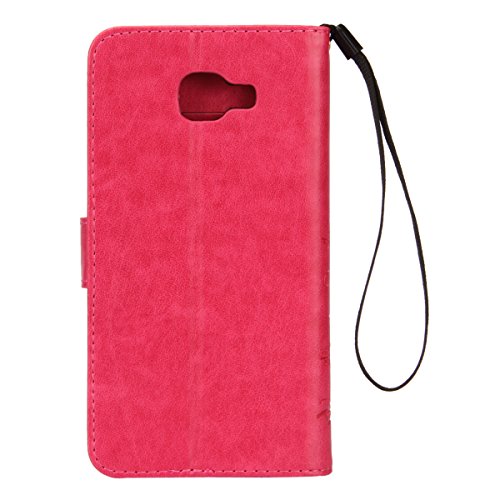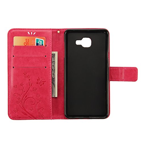 Custodia Galaxy A5 2016,Cover Galaxy A5 2016,Goffratura Arts Farfalla Fiore Immagine Flip Cover Portafoglio PU Pelle Protective Wallet Stand Custodia Cover per Galaxy A5 2016,Rosa caldo