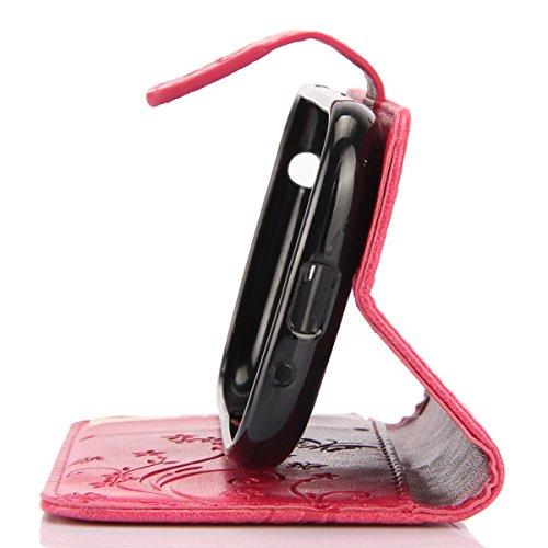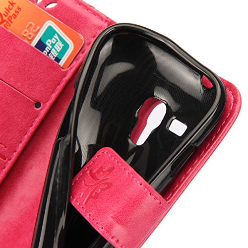 Custodia Galaxy S3 Mini,Cover Galaxy S3 Mini,ikasus Goffratura Arts Farfalla Fiore Immagine Flip Cover Portafoglio PU Pelle Protective Wallet Stand Custodia Cover per Galaxy S3 Mini,Rosa caldo