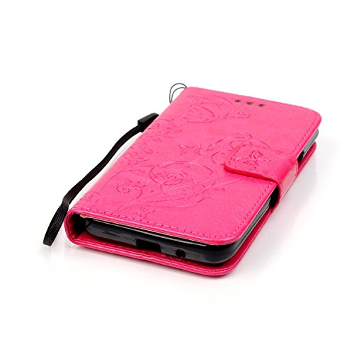 Custodia Galaxy S2 Cover,Cover Galaxy S2 Plus,ikasus Goffratura Vines Fiore Farfalle Modello Flip Cover Portafoglio PU Pelle Protective Wallet Stand Custodia Cover per Galaxy S2/S2 PLUS,Rosa caldo