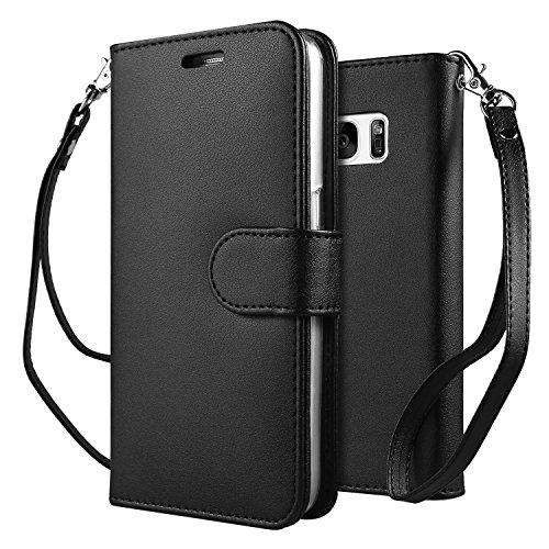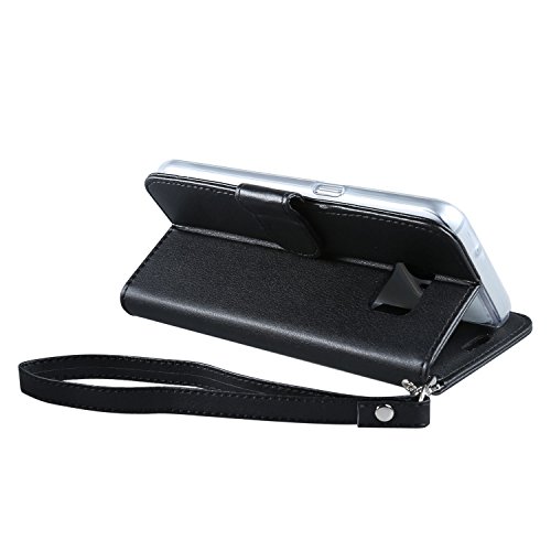 Custodia Galaxy S7 Cover Nero, Leathlux Puro Colore Modello Design Con Cinturino da Polso Magnetico Snap-on Book style Internamente Silicone TPU Custodie Case in pelle Protettiva Flip Case per Samsung Galaxy S7 G930F 5.1"