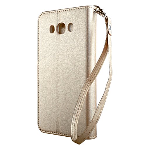Custodia Galaxy J3 2016 Cover Oro, Leathlux Puro Colore Modello Design Con Cinturino da Polso Magnetico Snap-on Book style Internamente Silicone TPU Custodie Case in pelle Protettiva Flip Case per Samsung Galaxy J3 (2015) / (2016) J320F 5.0"
