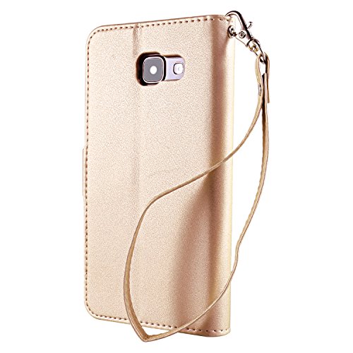 Custodia Galaxy A5 2016 Cover Oro, Leathlux Puro Colore Modello Design Con Cinturino da Polso Magnetico Snap-on Book style Internamente Silicone TPU Custodie Case in pelle Protettiva Flip Case per Samsung Galaxy A5 (2016) A510F 5.2"