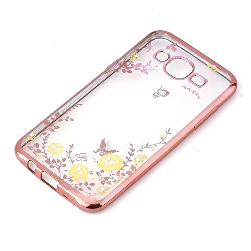 Custodia Galaxy J5 2016,Cover Galaxy J5 2016,Placcatura in oro rosa Lucido di cristallo di scintillio strass Diamante Gl J5 2016 J510F (5,2") SM-J510F,Cover Galaxy J5 2016,Oro della Rosa Fiori gialli