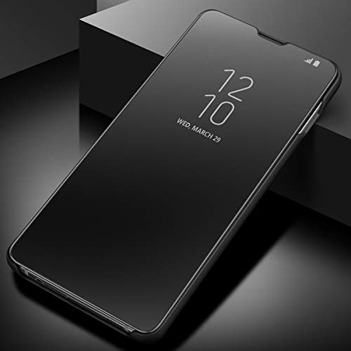 Custodia Galaxy S10e Cover Specchio Case Clear View Standing Mirror Flip Case Galaxy S10e Custodia con Flip Shell Anti-Scratch Protective Cover (Nero)