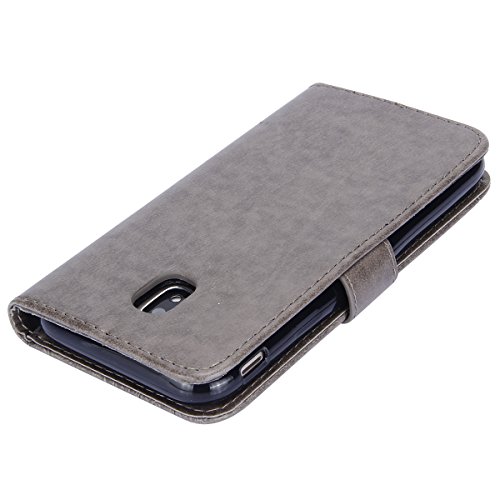 Custodia Galaxy J3 2017 Cover,Uposao Flip Case Protettiva Custodia in Pelle Lusso Bling Glitter Gufo Diamante Cover per Samsung Galaxy J3 2017 [EU-Versione]-(Grigio)