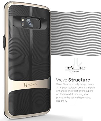 VENA Custodia Galaxy S8 Plus, Cover [vAllure] Struttura dell'onda [Bumper Frame] [CornerGuard Shockproof | Forte Presa] Copertura Ibrida Slim per Samsung Galaxy S8+ (Oro/Nero)