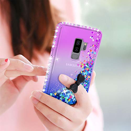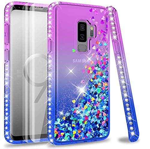 LeYi Custodia Galaxy S9 Plus Glitter Case con Full Cover Curved 3D PET Pellicola [2 Pack],Brillantini Diamond Silicone Sabbie Mobili Bumper per Custodie Samsung Galaxy S9 Plus ZX Purple Blue Gradient