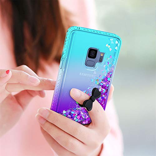 LeYi Custodia Galaxy S9 Glitter Case con Full Cover Curved 3D PET Pellicola [2 Pack],Brillantini Diamond Silicone Sabbie Mobili Bumper per Custodie Samsung Galaxy S9 ZX Turquoise Purple Gradient