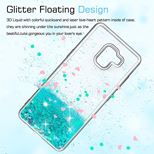 LeYi Custodia Galaxy A8 Plus 2018 Glitter Cover con HD Pellicola,Brillantini Trasparente Silicone Gel Liquido Sabbie Mobili Bumper TPU Case per Custodie Samsung Galaxy A8 Plus 2018 Donna ZX Turquoise