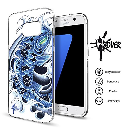 Custodia Galaxy S7 EDGE - INKOVER - Custodia Cover Protettiva Guscio Soft Case Bumper Trasparente Sottile Slim Fit Tpu Gel Morbida INKOVER Design Tattoo Tatuaggio Carpa Giapponese Japan Koi per Samsung Galaxy S7 EDGE
