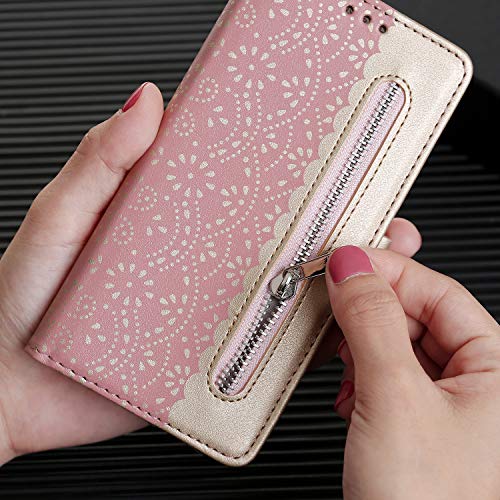 OATE Flip Case Custodia per Galaxy S7 Edge Libro Magnetico Book Style Donna in Pelle PU Cover Portafoglio Protettiva Slot Fiore di Pizzo PU Superficie Magnetica Stand Cerniera Cover per S7 Edge,Rosa