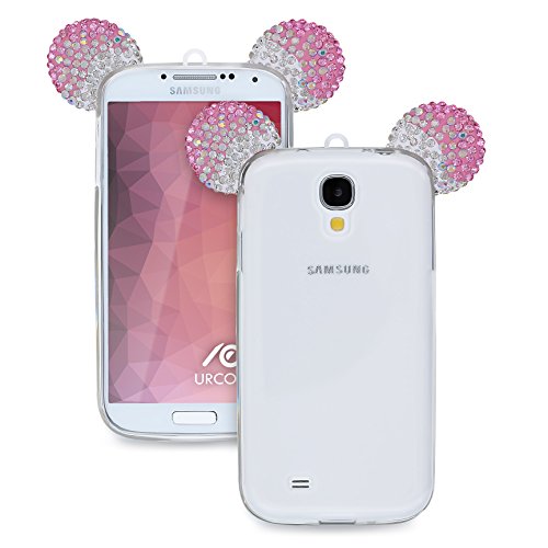 Custodia Galaxy S4 Orecchie da Topolino, Cover Protettiva in Silicone Trasparente Morbida Flessibile con Laccio, Back Case Samsung Galaxy S4 con Strass Brillantini Femminile Donna di Colore Fucsia Argento