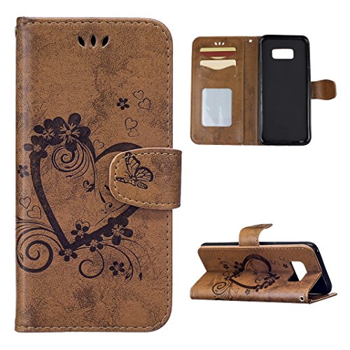 Custodia Galaxy S8 Plus in Pelle, Custodia Galaxy S8 Plus Cover, Rosa Schleife PU Cuore in pelle Fiore goffrato floreale Flip Folio chiusura magnetica Custodia protettiva Cover per Samsung S8 Plus