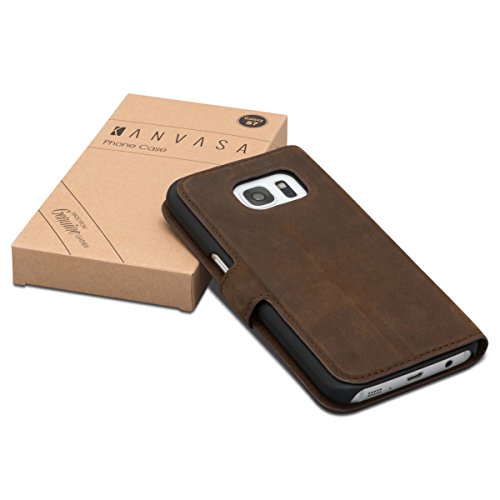 Custodia Galaxy S7 Pelle Marrone - KANVASA"Vintage" Cover Folio Book Flip in Autentica Pelle per Samsung Galaxy S7 - Case Portafoglio Premium con 4 Tasche
